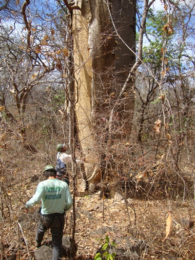 O quarto dia foi o mais dramático, a fim de recuperarmos o tempo que gastamos na comunidade, resolvemos atravessar uma serra que nos levaria direto para dentro das terras do parque, embora ainda longes do leito do rio Peruaçu, nosso objetivo. Nossa intenção foi muito boa, porem esta serra era formada por uma capoeira extremamente densa, entrelaçadas por cipós fortíssimos e espinhentos que nos rasgavam a cada metro avançado mata á dentro. Mesmo com serviço pesado prestado por Carlos Manolo de correr e se jogar contra a mata , tentando abri-la como um trator, coisa de uma mistura de loucura com um pouco de desespero e vontade de sair dali o mais rápido possível...acreditem atravessamos os dois km de serra, subindo de um lado e descendo pelo outro em pouco mais de uma tarde inteira...mais de seis horas para atravessar dois km...Nesta noite dormimos acampados do lado de fora de uma base do parque, a casa onde ficam o pesquisadores.